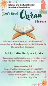 Community Outreach Let’s Read Qur’an Sisters! Ramadan Qur’an Muqabala (Recitation) with Hafiza Dr. Syeda Ayisha Read More »