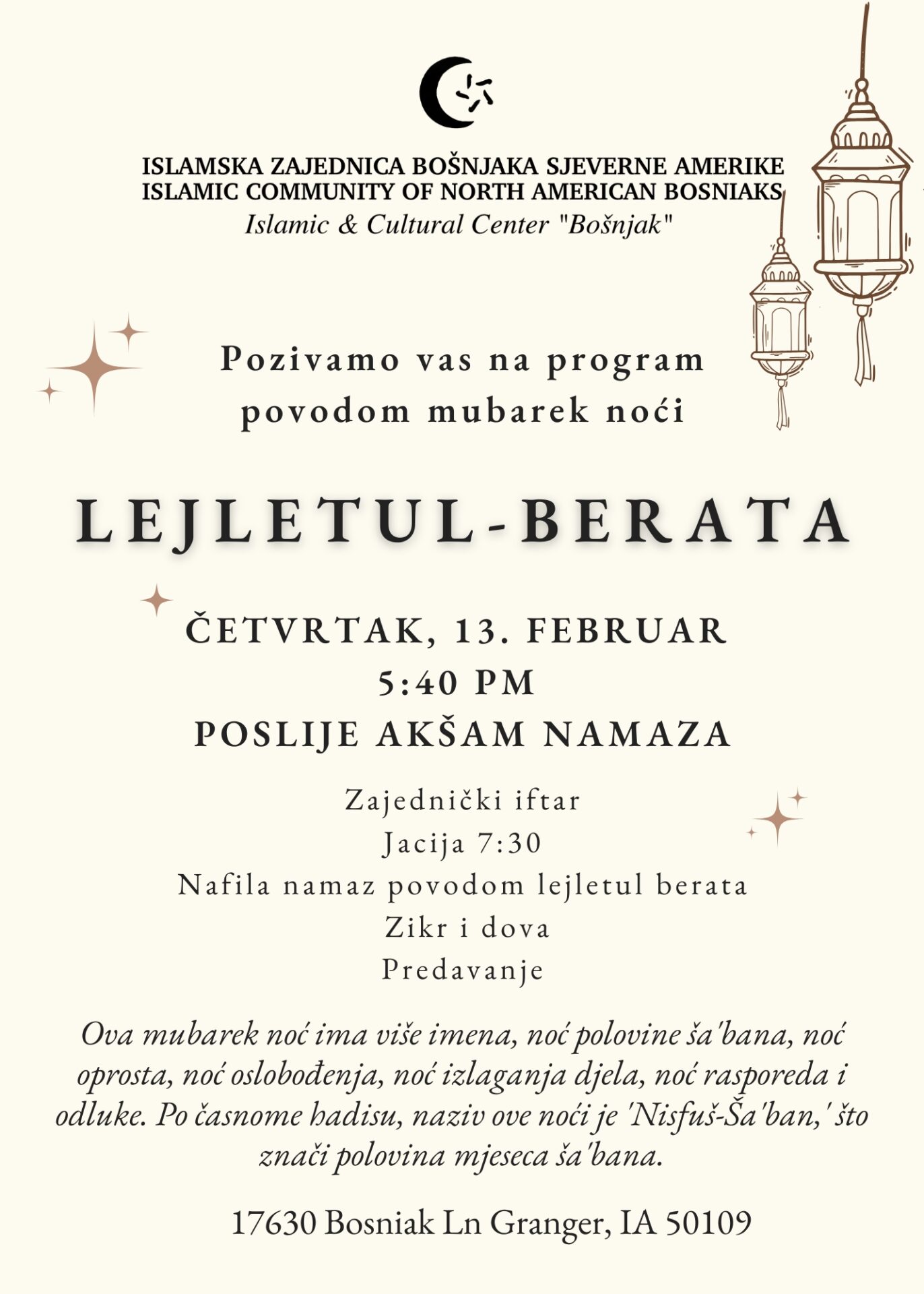 This blessed night has several names: the night of mid-Sha'ban, the night of forgiveness, the night of deliverance, the night of presenting deeds, the night of decree and decision. According to a noble hadith, the name of this night is 'Nisfu Sha'ban,' which means the middle of the month of Sha'ban.